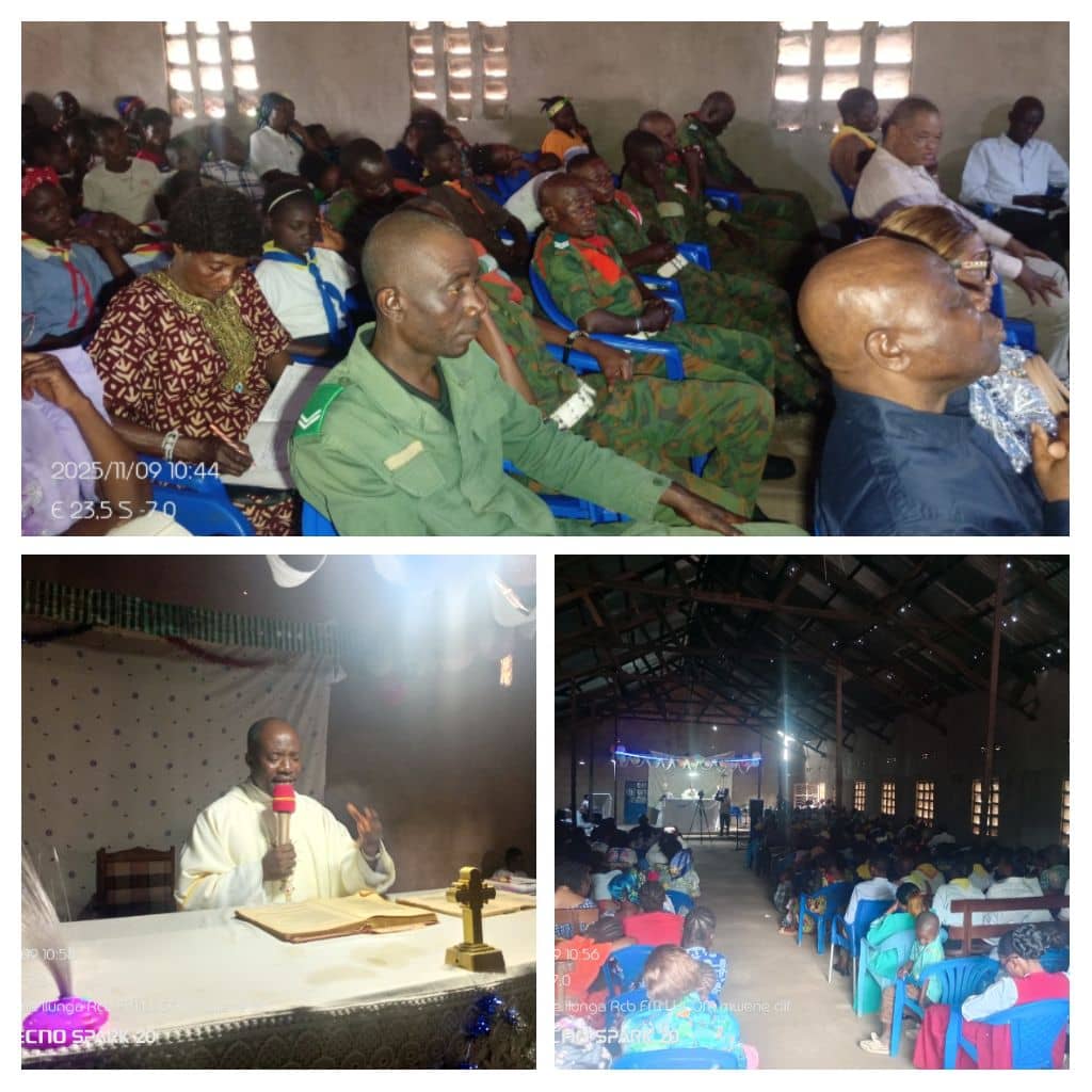 Sous le haut patronage de Mgr Sébastien Kenda Ntumba, évêque du diocèse de Tshilomba et dans le cadre des pèlerinages, une messe solennelle a été célébrée ce dimanche 09 Novembre 2025 à l’aumônerie militaire Saint Georges, située au camp Bukasa, en l’honneur des militaires et policiers. L’événement s’inscrivait dans le cadre de la fête de la dédicace de la basilique du Latran, mère de toutes les églises du monde.